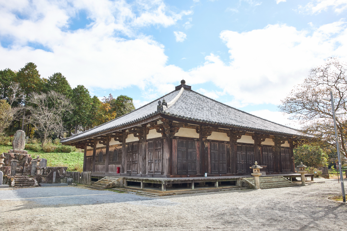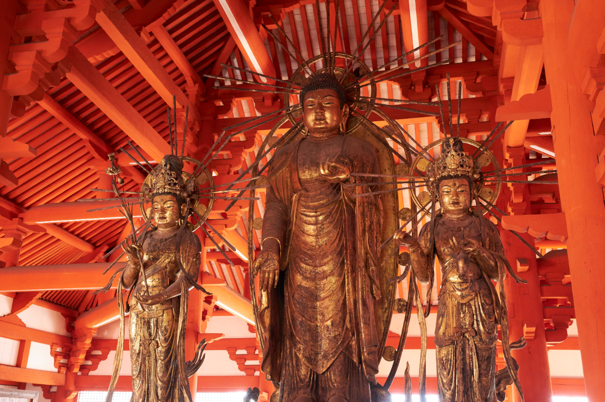 堂内には、有名な仏師「快慶(かいけい)」による木造の阿弥陀如来像(あみだにょらいぞう)が安置されています。こちらも浄土堂(じょうどどう)と同じく国宝です。